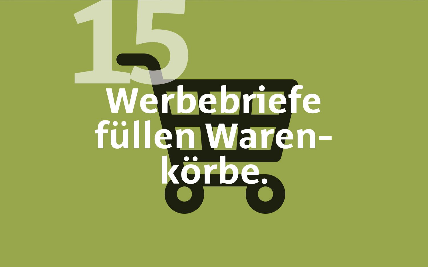 «Mit dem Werbebrief lassen sich bis 7 Prozent höhere Warenkorbwerte erzielen als mit Maxipostkarten und Selfmailern», ergibt die CMC-Dialogpost-Studie 2020. So hat Flaschenpost.ch während der Kampagne 7-mal mehr Flaschen verkauft. Die Werbeerinnerung bei Leserinnen und Lesern betrug 53 Prozent.