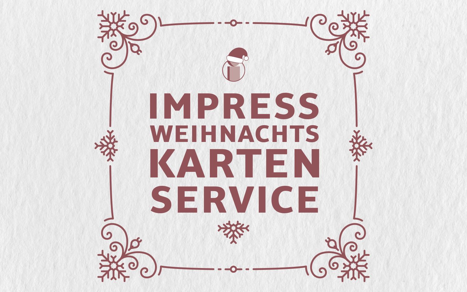 So einfach wie dieses Jahr war es noch nie! In untenstehendem Link finden Sie unseren Weihnachtskarten-Katalog. Wählen Sie Ihr Motiv aus, senden uns Ihren gewünschten Text zu und bestimmen die Auflage. Wir erledigen den Rest.